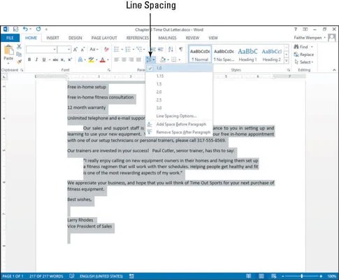 To apply your selected line spacing. Note that your paragraph spacing is changed. Choose Line Spacing Options.